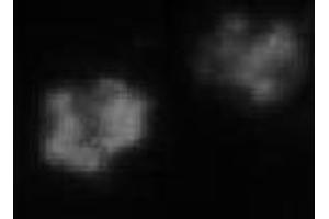 - Flow cytometry Immunocytochemistry Immunoprecipitation Immunohistochemistry: (frozen sections and paraffin sections) Western blot: Suggested dilution of 1 µg/mL The optimal dilution for a specific application should be determined by the researcher. Figure A: Detection of recombinant granzyme B. Granzyme B migrates as a 27 kDa species. Method: Recombinant granzyme B was resolved by SDS-PAGE under reducing conditions, transferred to nitrocellulose and probed with the monoclonal anti-granzyme B antibody B18.1 at 1 µg/mL. Proteins were visualized using a peroxidase-conjugated antibody to mouse IgG and a chemiluminescence detection system. Figure B: Detection of granzyme B in a human CD8+ T cell clone. Method: Human T cells were plated onto polylysine treated glass slides, fixed and permeabilized in methanol at -20 °C for 5 min., then in acetone at -20 °C for 30 seconds. After 3 washes in PBS, 0.1% BSA, slides were incubated for 1 hour at room temperature (RT) with 20 µg/mL of clone B18.4 antibody in PBS, 0.1% BSA. After rinsing in PBS, a FITC-conjugated anti-mouse IgG was added for 30 min., slides washed again in PBS and visualized using a fluorescence microscope.