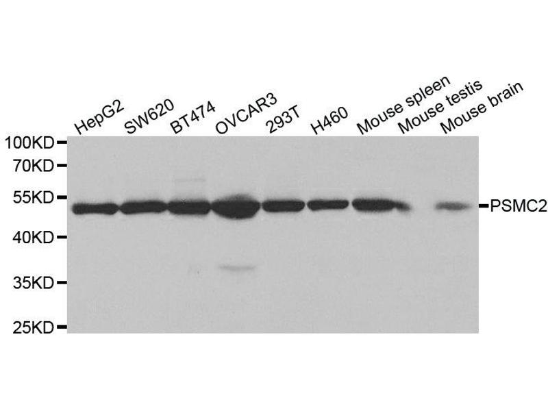 This anti-PSMC2 antibody is a Rabbit Polyclonal antibody detecting PSMC2 in WB, IHC and IF. Suitable for Human, Mouse and Rat.