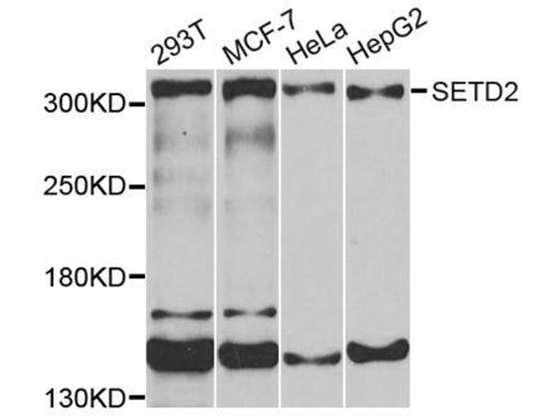 The Rabbit Polyclonal anti-SETD2 antibody has been validated for WB, IHC, IF, IP and ChIP. It is suitable to detect SETD2 in samples from Human, Mouse and Rat.