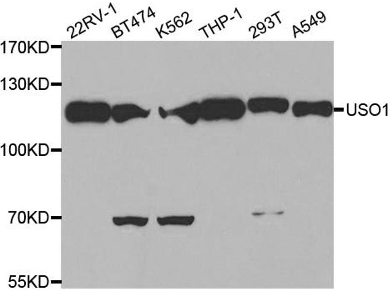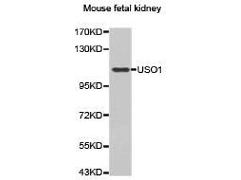 This anti-USO1 antibody is a Rabbit Polyclonal antibody detecting USO1 in WB, IHC, IF and IP. Suitable for Human, Mouse and Rat.