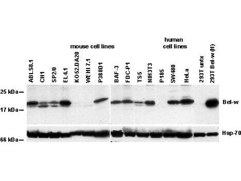 - Recognizes human, mouse, rat, monkey and dog Bcl-w.