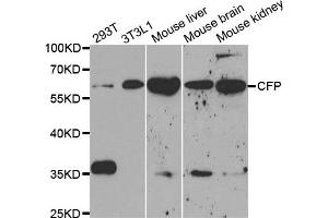 The Rabbit Polyclonal anti-CFP antibody has been validated for WB, IHC and IF. It is suitable to detect CFP in samples from Human, Mouse and Rat.