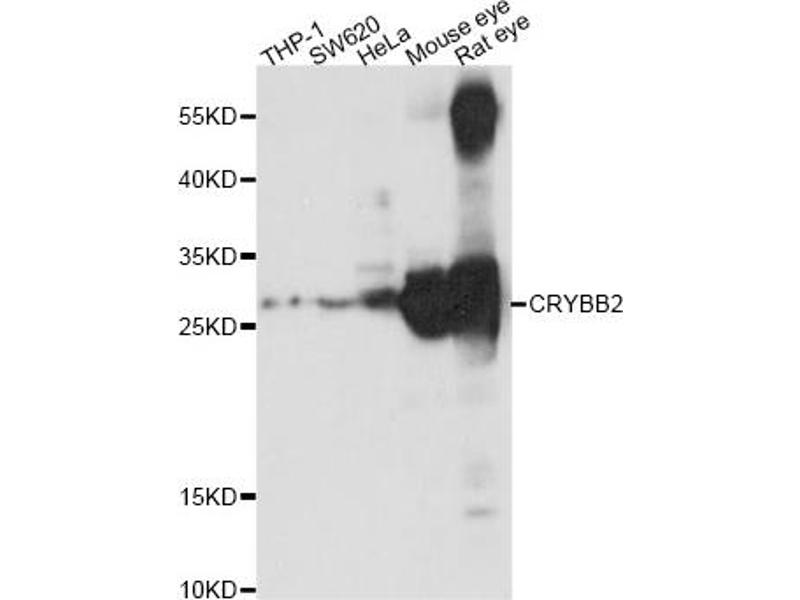 This Mouse Monoclonal antibody specifically detects CRYbB2 in WB and IHC. It exhibits reactivity toward Rat, Mouse and Human.