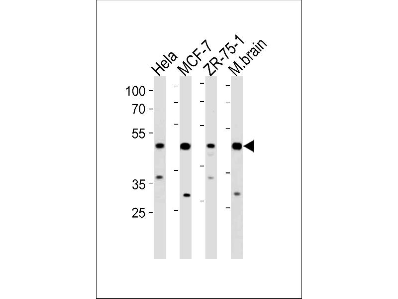 - This antibody is purified through a protein A column, followed by peptide affinity purification.