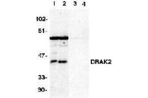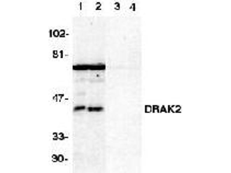 The Rabbit Polyclonal anti-DRAK2 antibody (ABIN189897) specifically detects DRAK2 in WB.