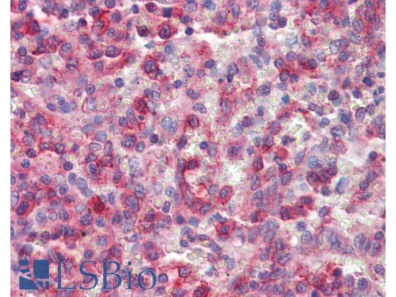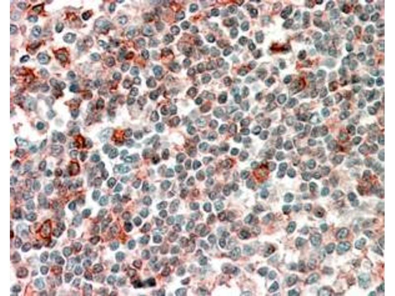 Immunohistochemistry: Paraffin embedded Human Tonsil and Spleen. Recommended concentration: 2.5 μg/mL.