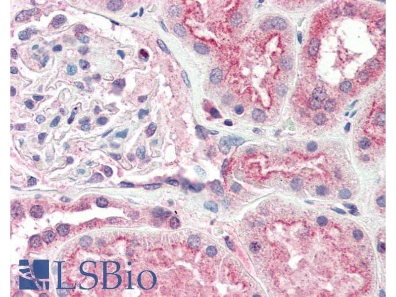Immunohistochemistry: Paraffin embedded Human Kidney. Recommended concentration: 5 μg/mL.