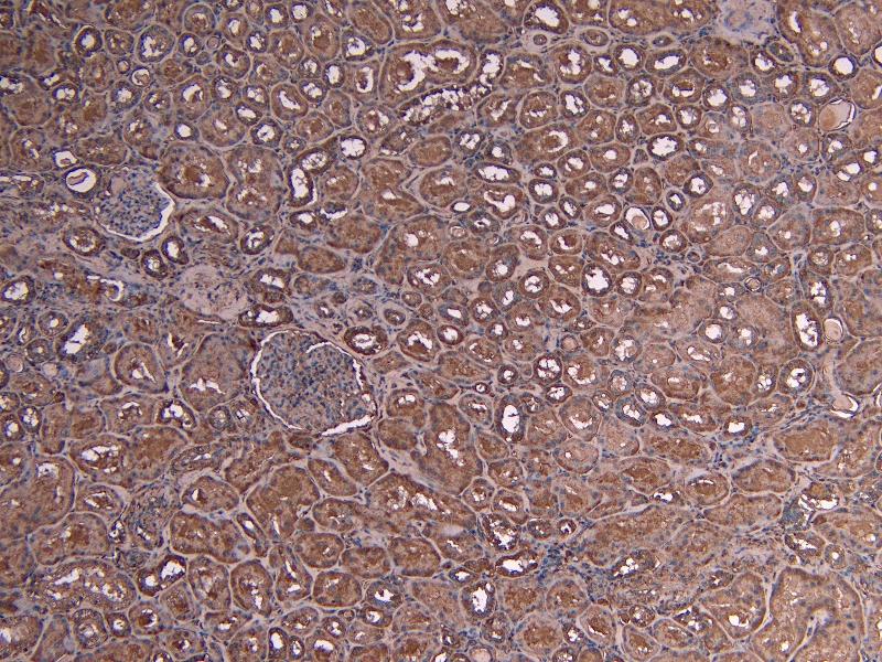 Immunohistochemistry: Paraffin embedded Human Kidney. Recommended concentration: 4 μg/mL.