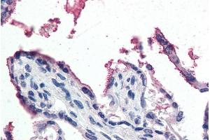 Immunohistochemistry: Paraffin embedded Human Kidney. Recommended concentration: 3-5 μg/mL.