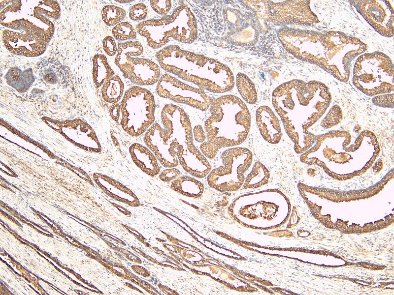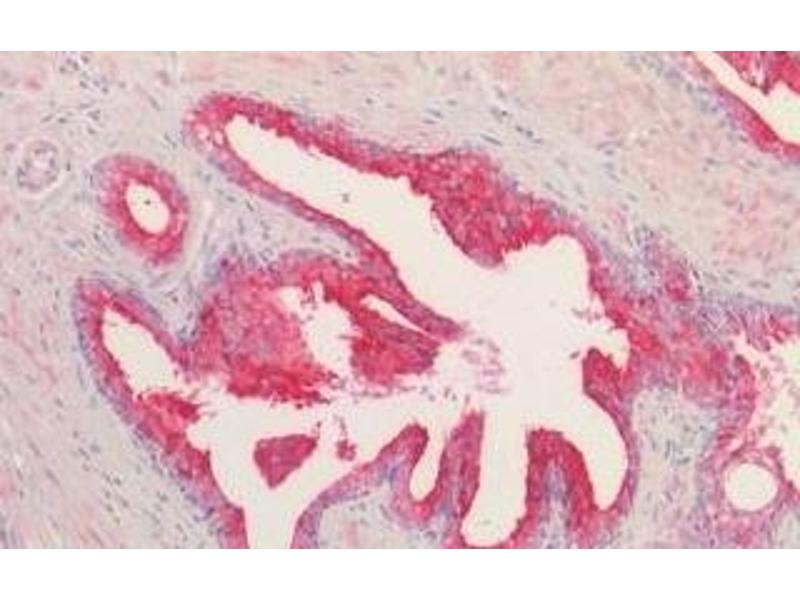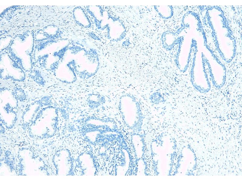 Immunohistochemistry: Paraffin embedded Human Prostate. Recommended concentration: 2.5-8 μg/mL.