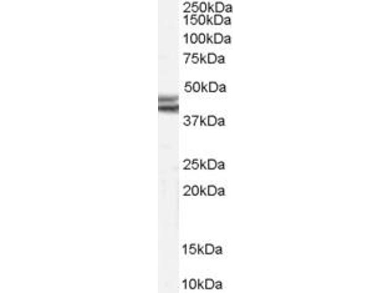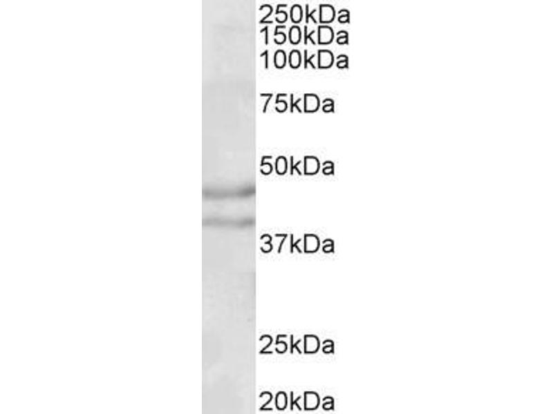 Western Blot: Approx 40+45 kDa band observed in Rat Brain lysates (calculated MW of 42.6 kDa according to NP_032757.1). Recommended concentration: 0.1-0.3 μg/mL.