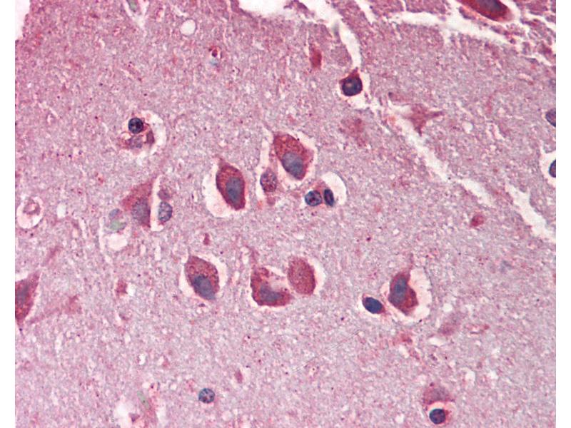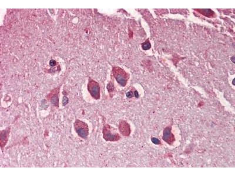 Usage: Western Blot: Preliminary experiments in Human Brain (Hippocampus) and Skeletal Muscle lysates gave no specific signal but low background (at antibody concentration up to 1 μg/mL). -