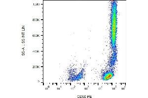 Flow cytometry: The reagent is designed for analysis of human blood cells using 20 μL reagent / 100 μL of whole blood or 106 cells in a suspension. The content of a vial (2 ml) is sufficient for 100 tests.