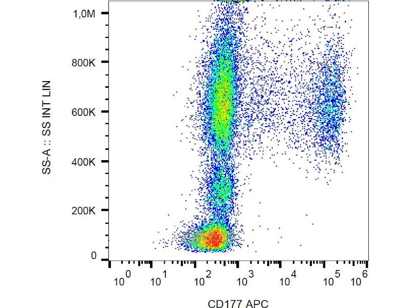 The antibody MEM-166 reacts with CD177 (Neutrophil specific antigen 1), a 60 kDa GPI-linked cell surface glycoprotein of uPAR family, expressed on granulocytes and in bone marrow early erythroblasts, megakaryocytes, promyelocytes and myelocytes.