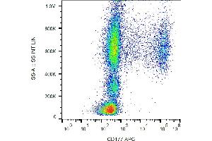 Flow cytometry: The reagent is designed for analysis of human blood cells using 10 μL reagent / 100 μL of whole blood or 106 cells in a suspension. The content of a vial (1 ml) is sufficient for 100 tests.