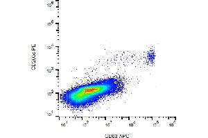 - Flow cytometry: The reagent is designed for analysis of human blood cells using 10 μL reagent / 100 μL of whole blood or 106 cells in a suspension. The content of a vial (1 ml) is sufficient for 100 tests.