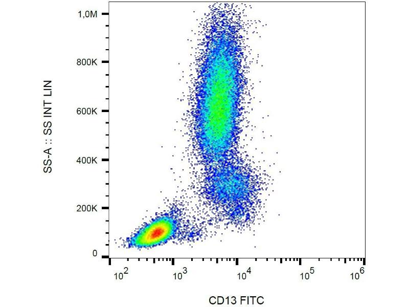 The antibody WM15 recognises an extracellular epitope of human CD13 cell surface glycoprotein, a 150 kDa molecule expressed on granulocytes, endothelial cells, epithelial cells and myeloid progenitors.