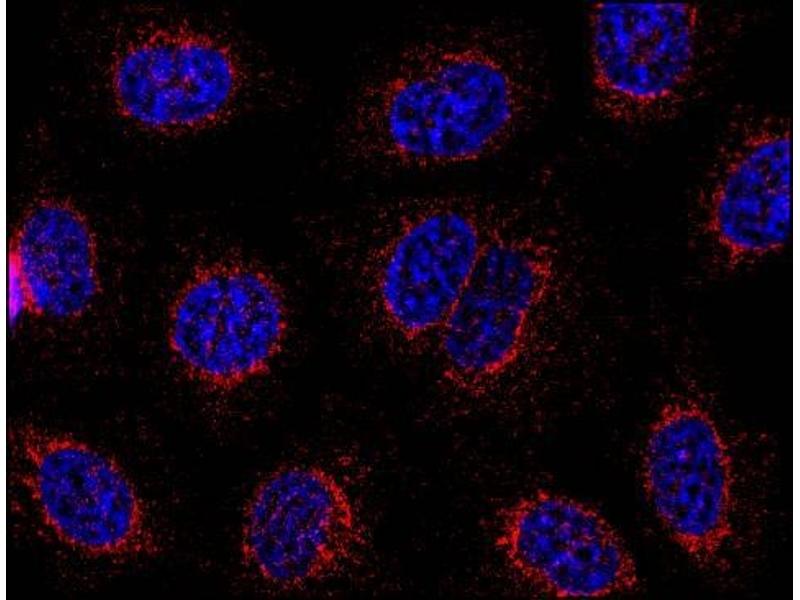 The mouse monoclonal antibody CDN3H4 reacts with a cytoplasmic epitope of human and rodent STIM1, a 84 kDa essential and conserved regulator of store-operated Ca2+ channel function.