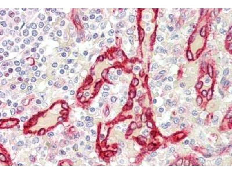 SDPR affinity purified antibody was prepared from whole rabbit serum produced by repeated immunizations with a synthetic peptide corresponding to the C-terminal region of human SDPR.