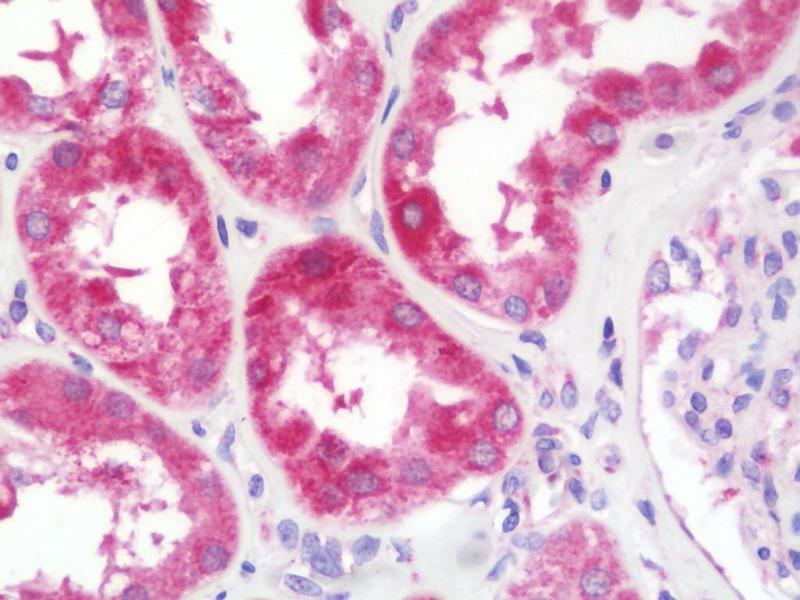 Recombinant fragment corresponding to a region within amino acids 12 and 507 of XPNPEP3 (SwissProt Q9NQH7). Percent identity by BLAST analysis: Human (100%), Rat, Bovine (90%).