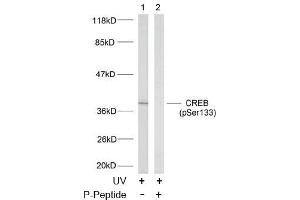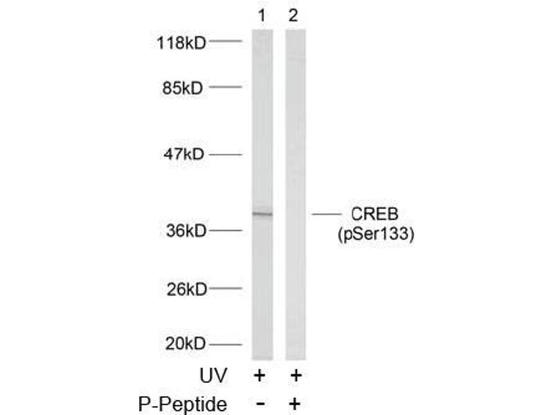 The antibody was affinity-purified from rabbit antiserum by affinity-chromatography using epitope-specific phosphopeptide. The antibody against non-phosphopeptide was removed by chromatography using non-phosphopeptide corresponding to the phosphorylation site. CREB (phospho-Ser133) antibody detects endogenous levels of CREB only when phosphorylated at serine 133.