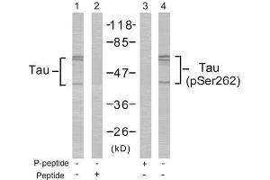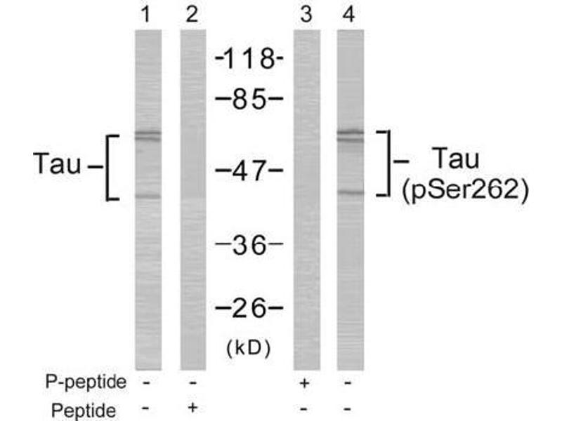 The antiserum was produced against synthesized phosphopeptide derived from human Tau around the phosphorylation site of serine 262 (I-G-SP-T-E).