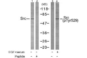 The antibody detects endogenous levels of Src only when phosphorylated at Tyrosine 529.