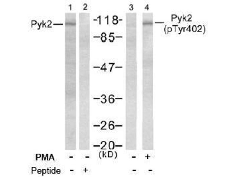 - This antibody detects endogenous levels of Pyk2 only when phosphorylated at Tyrosine 402.