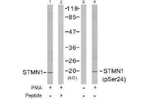 Stathmin 1 antibody detects endogenous levels of Stathmin 1 only when phosphorylated at serine 24.