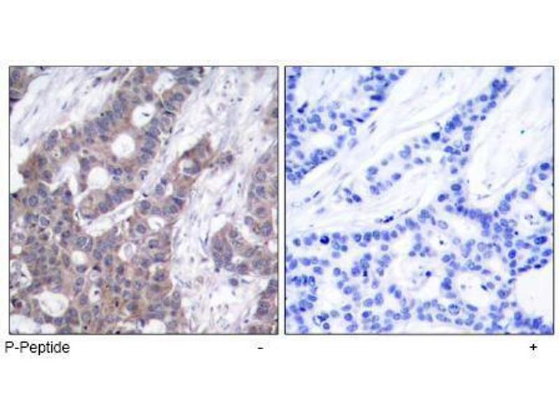 The antibody was affinity-purified from rabbit antiserum by affinity-chromatography using epitope-specific phosphopeptide. The antibody against non-phosphopeptide was removed by chromatography using non-phosphopeptide corresponding to the phosphorylation site.
