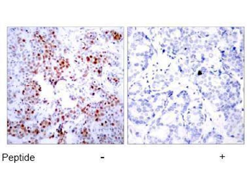 The antiserum was produced against synthesized non-phosphopeptide derived from human ATF-2 around the phosphorylation site of threonine 69 or 51 (D-Q-TP-P-T).