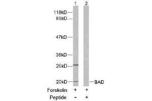 Bad is a member of the Bcl2 family and acts to promote apoptosis by forming heterodimers with the survival proteins Bcl2 and BclxL, thus preventing them from binding with BAX. Bad is found on the outer mitochondrial membrane and, once phosphorylated in response to growth stimuli, translocates to the cytoplasm. The phosphorylation status of Bad represents a key checkpoint for death or cell survival. JNK-induced phosphorylation of BAD serine 128 promotes the apoptotic role of Bad by opposing the inhibitory effect of growth factor on Bad-mediated apoptosis. Cdc2-induced phosphorylation of Bad serine 128 has an inhibitory effect on its interaction with 14-3-3 proteins. The latter interaction is critical for Bad phosphorylation at serine 155, a site within the BH3 domain that leads to the release of BclxL and the promotion of cell survival. Alternative splicing of this gene results in two transcript variants which encode the same isoform.Synonyms: BAD, BBC6, BCL2L8, Bcl-2-binding component 6, Bcl-2-like protein 8, Bcl-XL/Bcl-2-associated death promoter, Bcl2 antagonist of cell death, Bcl2-L-8