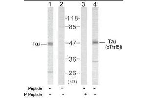 The antiserum was produced against synthesized non-phosphopeptide derived from human Tau around the phosphorylation site of threonine 181 (P-K-TP-P-P).