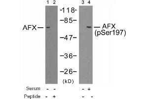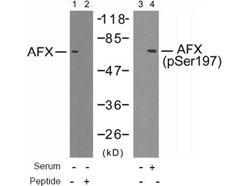 The antiserum was produced against synthesized non-phosphopeptide derived from human AFX around the phosphorylation site of serine 197 (A-A-Sp-M-D).