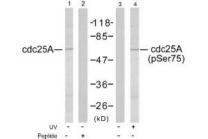 The antiserum was produced against synthesized non-phosphopeptide derived from human cdc25A around the phosphorylation site of serine 75 (M-G-Sp-S-E).