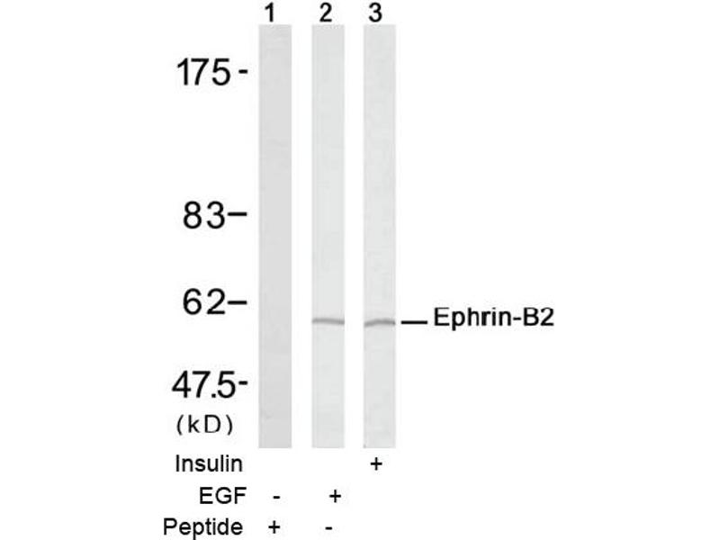 The antiserum was produced against synthesized non-phosphopeptide derived from human Ephrin-B2 around the phosphorylation site of tyrosine 316 (P-V-Yp-I-V).