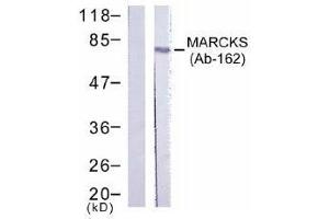 The antiserum was produced against synthesized non-phosphopeptide derived from human MARCKS around the phosphorylation site of serine 162 (K-K-SP-F-K).