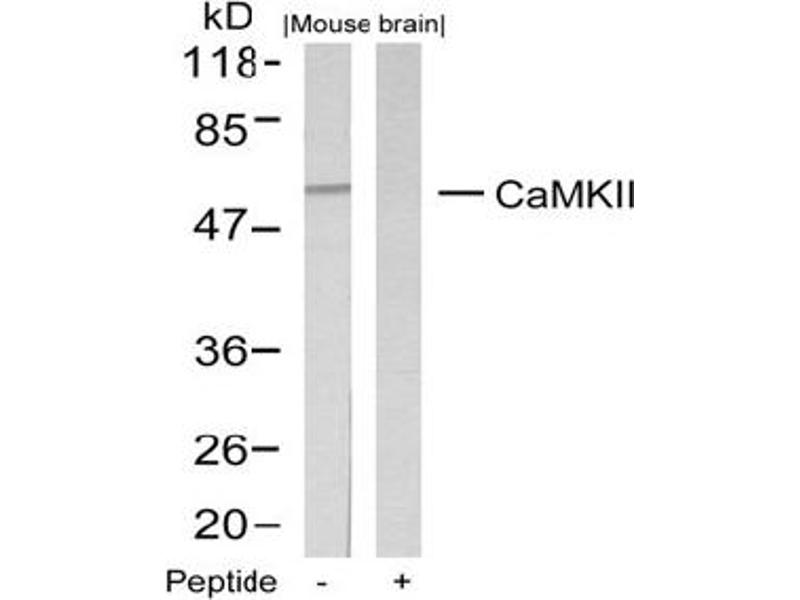 CaMKII (Calcium/calmodulin-dependent protein kinase II) is a ubiquitous serine/threonine protein kinase that is abundant in the brain as a major constituent of the postsynaptic density (PSD). The enzyme is an oligomeric protein composed of distinct but related subunits, alpha, beta, gamma, and delta, each encoded by a separate gene. CAMK2A assembles into heterooligomeric complexes with other CAMK2 subunits. CaMKII is a prominent kinase in the central nervous system that may function in long term potentiation and neurotransmitter release.Synonyms: CAMK2A, CAMK2B, CAMKA, CaM kinase II subunit alpha, CaM kinase II subunit beta, CaM-kinase II alpha chain, CaM-kinase II beta chain, CaMK-II subunit alpha, CaMK-II subunit beta, Calcium/calmodulin-dependent protein kinase type II alpha chain, KIAA0968
