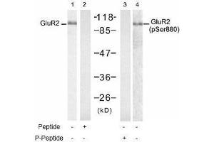 The antiserum was produced against synthesized non-phosphopeptide derived from human Glutamate receptor 2(Precursor) around the phosphorylation site of serine 880 (I-E- SP-V-K).