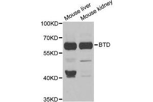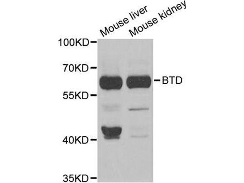 This anti-BTD antibody is a Rabbit Polyclonal antibody detecting BTD in WB and IHC. Suitable for Human.