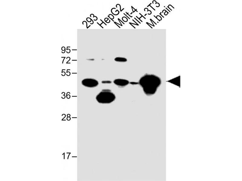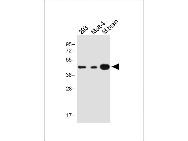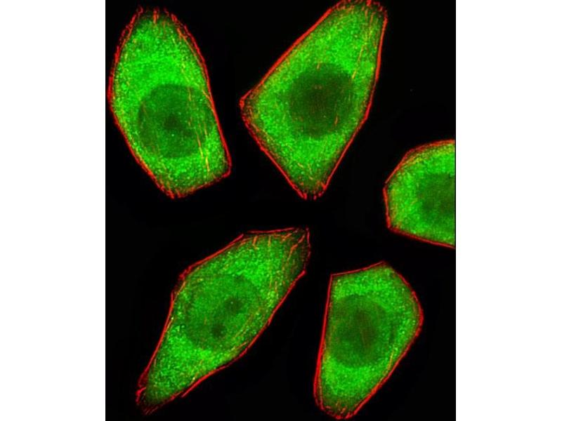 This STRADA antibody is generated from a rabbit immunized with a KLH conjugated synthetic peptide between 303-346 amino acids from the C-terminal region of human STRADA.
