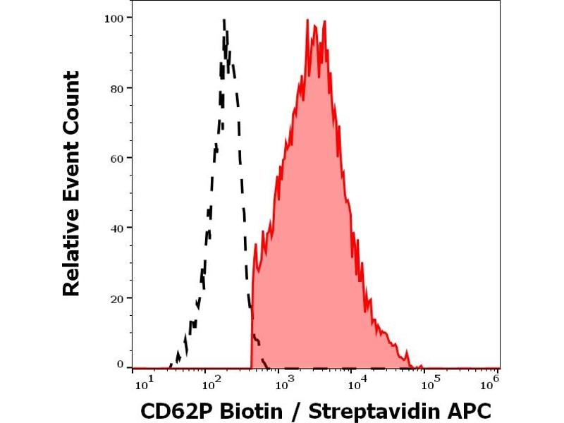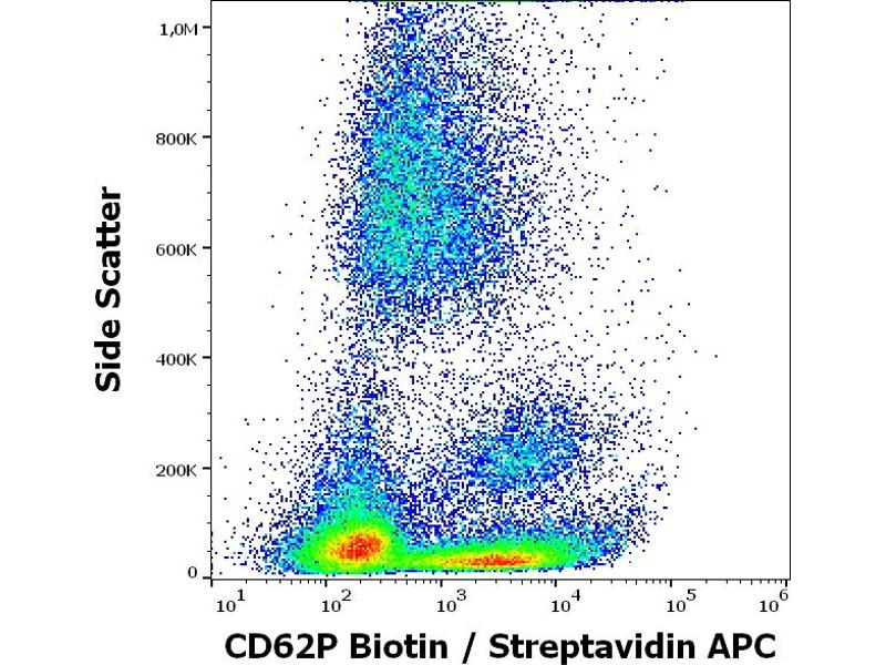 The antibody AK4 recognizes an extracellular epitope of CD62P (P-selectin), a 140 kD single chain type I transmembrane glycoprotein present in secretory alpha-granules in platelets, in Weibel-Palade bodies in endothelial cells and in megakaryocytes, it is relocated to the plasma membrane upon activation.