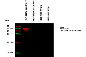 The mouse monoclonal antibody EM-17 recognizes phosphorylated intracellular tyrosine 153 of CD3 zeta chain (CD247), which is a component of TCR/CD3 complex expressed on T cells.