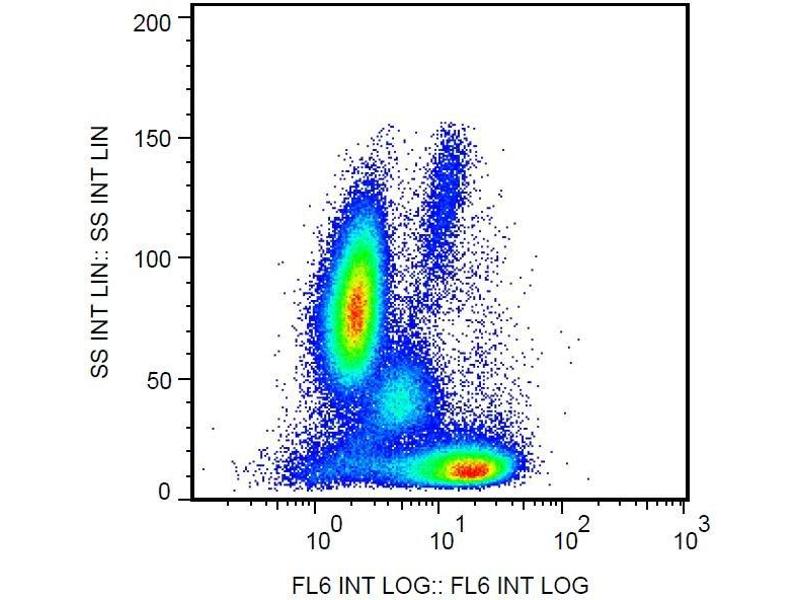 - Flow cytometry: The reagent is designed for analysis of human blood cells using 10 μL reagent / 100 μL of whole blood or 106 cells in a suspension. The content of a vial (1 ml) is sufficient for 100 tests. Intracellular staining.