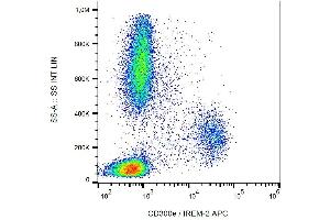The mouse monoclonal antibody UP-H2 recognizes an extracellular epitope on CD300e / IREM-2, a 32 kDa glycoprotein expressed by mature monocytes and peripheral blood myeloid dendritic cells.