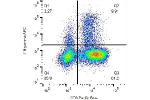 The APC-conjugated Mouse Monoclonal anti-Interferon gamma antibody (Clone 4S-B3) (ABIN1981881) specifically detects Interferon gamma in ICFC.