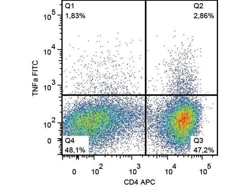 Flow cytometry: The reagent is designed for analysis of human blood cells using 4 μL reagent / 100 μL of whole blood or 106 cells in a suspension. The content of a vial (0.4 ml) is sufficient for 100 tests. Intracellular staining.