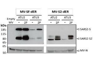 - Full length Spike protein transfected into UM92 cells was used as a positive control and an approximate 139 kD band was observed.