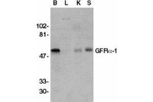 - GFR alpha 1 antibody is predicted to not cross-react with other members of the GFR alpha family of proteins.