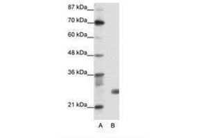 Synthetic peptide from N-Terminus of human SAP30 (O75446, NP_003855). Percent identity by BLAST analysis: Human, Chimpanzee, Gorilla, Monkey, Marmoset (100%), Gibbon, Mouse, Dog, Rabbit, Guinea pig (92%), Galago, Hamster, Bovine, Opossum (85%).